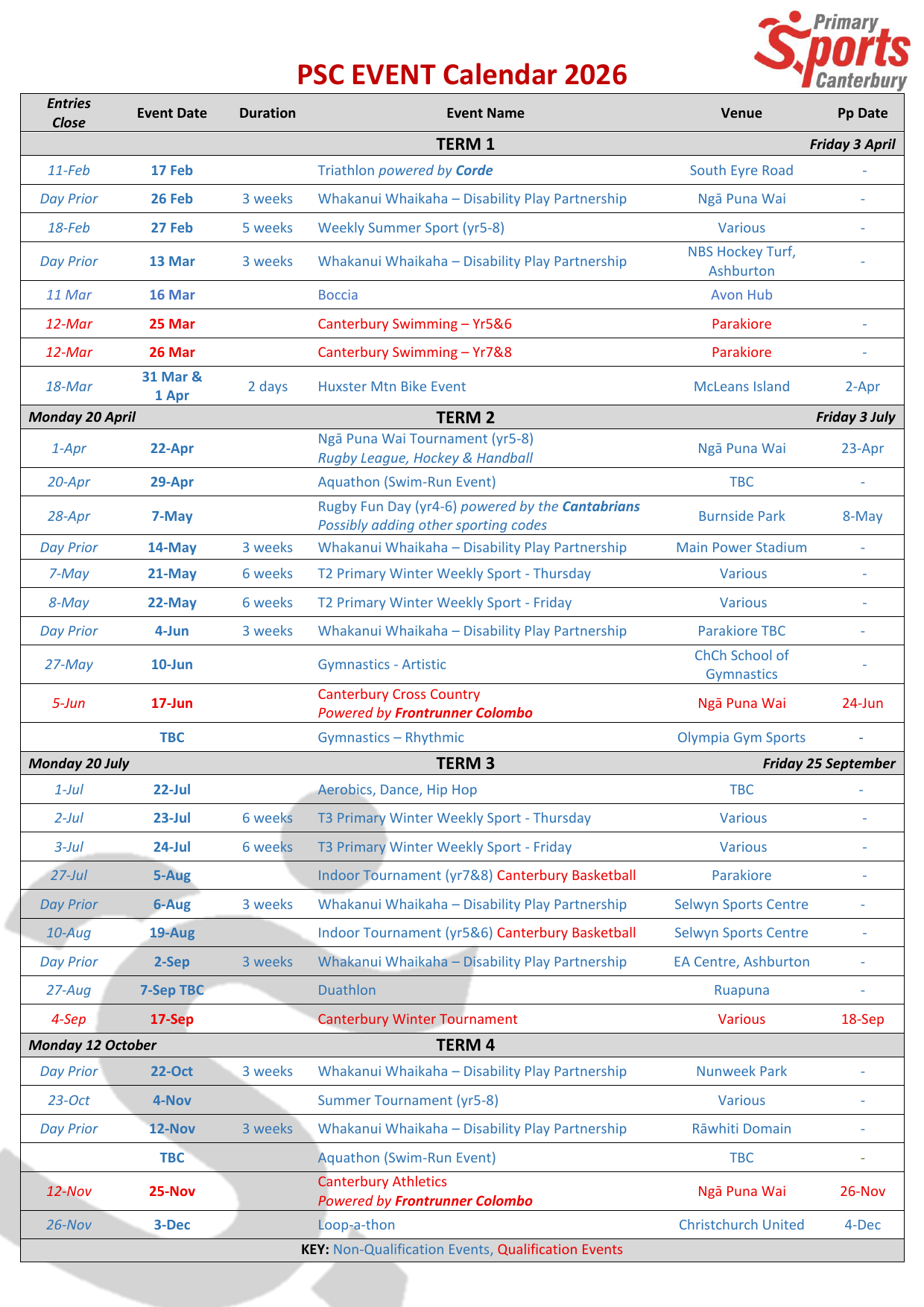 2026 PRIMARY SPORTS CANTERBURY EVENTS